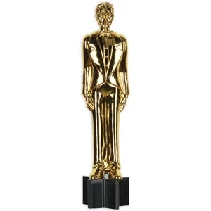 Awards Night Cutout is a one-dimensional, foil coated cardstock statue. Double sided. Available in two sizes. In the larger size, we have female and male award statues.
