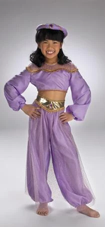 Super deluxe prestige costume includes lavender top, pants with gold yoke detail and headpiece.