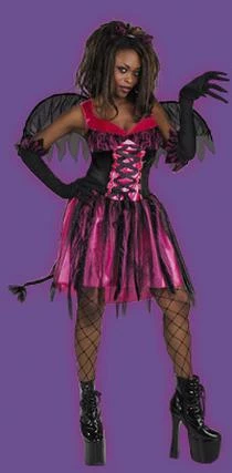 Costume includes dress with attached tail, wings, gloves and headband ears. (Fishnet stockings not included.)