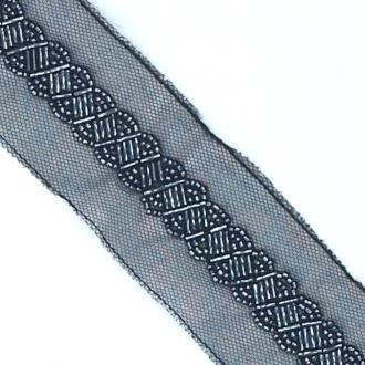 The wonderful trim has a collection of various long and short colored beads to give the illusion of rolling waves. The pattern is on mesh and measures .5″ in width and with mesh it is 1″ in width.