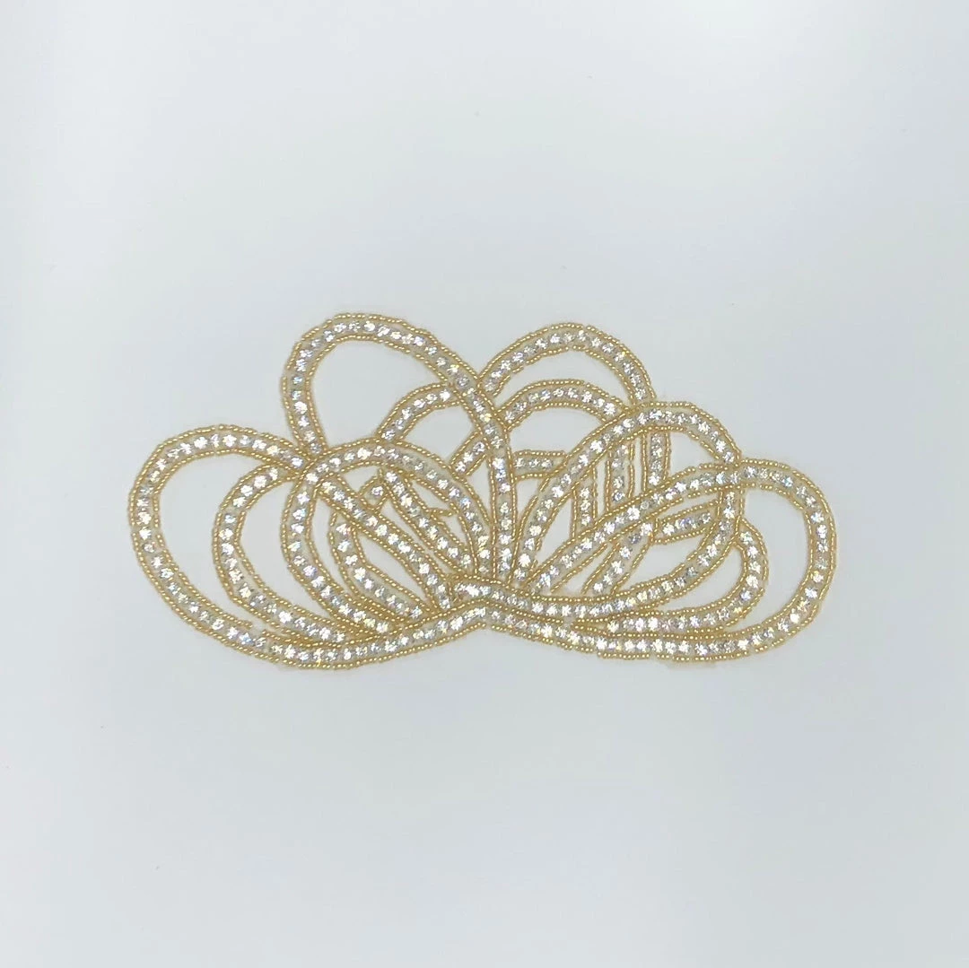 Bead & Rhinestone Loop Applique is beautifully lined with seed beads and rhinestones. Perfect for dancing, skating or horse show costuming. Measures 9 inches by 4 1/2 inches. Sold individually.