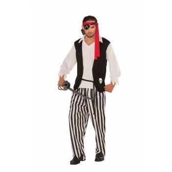 This costume comes with a head sash, shirt, vest, belt and pants. Perfect for a day of pillaging.