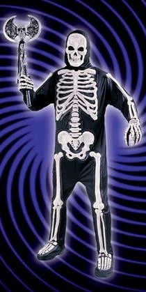 Latex bones covering cloth jumpsuit gloves & feet. Hooded mask.