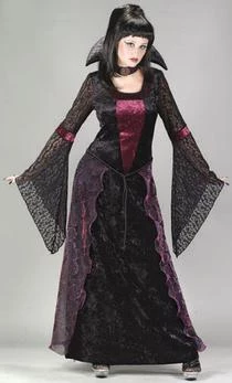 Costume includes velvet dress, belt and collar with attached choker.