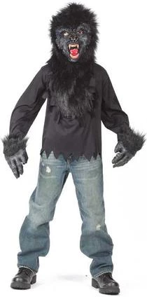 Costume includes mask, gloves and shirt with plush gorilla fur. (Pants are not included.)