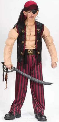 Costume includes muscle shirt, vest, pants, belt and bandana.