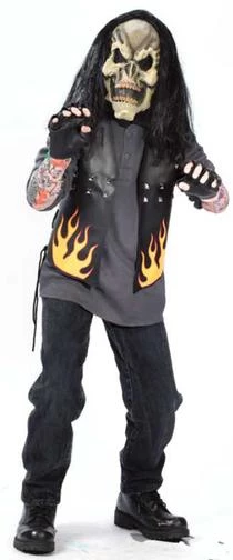 Costume includes mask with wig, studded vest with graphics. gloves and two tattoo sleeves. (Pants and under shirt not included.)