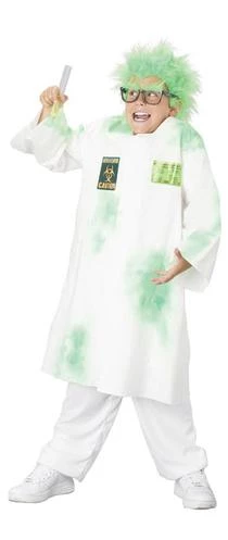 Costume includes lab coat with name tag, plush green wig and glasses with eyebrows. (Pants not included)