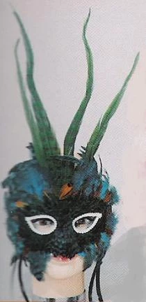 Fancy feather face mask with beaded tassels.