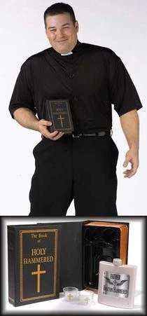 Costume includes shirt with collar, book with flask and 4 shot glasses. (Pants not included)