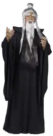 Costume includes flowing robe and distressed faux leather tunic. (Wing and beard set available separately)