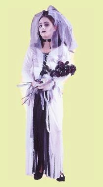 Costume includes dress, veil, choker and gloves.