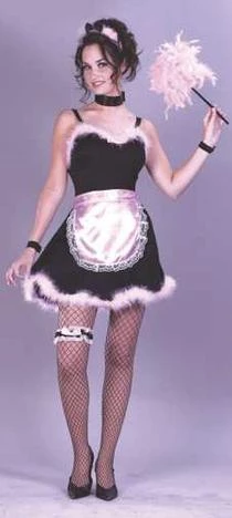 Costume includes dress, apron, headband, garter and wrist bands.