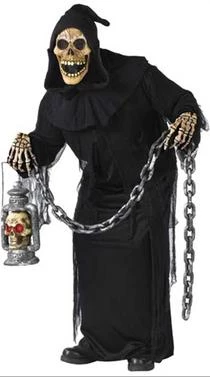 Costume includes robe, mask with shroud, tattered overall and gloves. (Lantern and chain not included)
