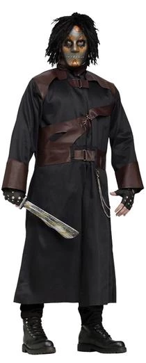 Costume includes industrial-look mask with dreads and long, black cost with leather accents. (Gloves and weapon not included)