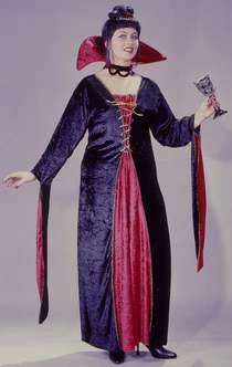 Costume includes luxurious velvet dress and collar with choker. Fits dress size 16 to 24W.