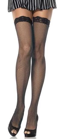 Sexy fishnet thigh highs with an elegant lace top. One size fits most.