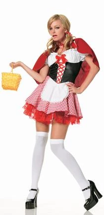 Costume includes hooded cape and peasant top dress. (Petticoat and stockings available separately.)