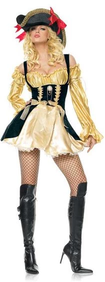 Costume includes peasant top dress with jeweled brooch. (Pirate hat and stocking available separately)
