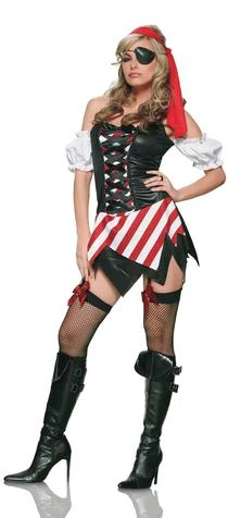 Costume includes gartered dress, head scarf and eye patch. (Stockings and boots not included)