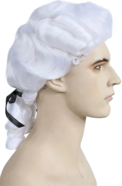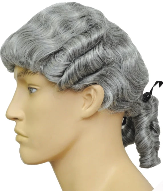 Quality made Colonial Man Wig available in a great selection of colors. Two side curls and pigtail in back. Fine for young Washington. Hook & loop elastic for sizing.Roll your cursor over the images below to see a bigger image and the name of that color choice.
