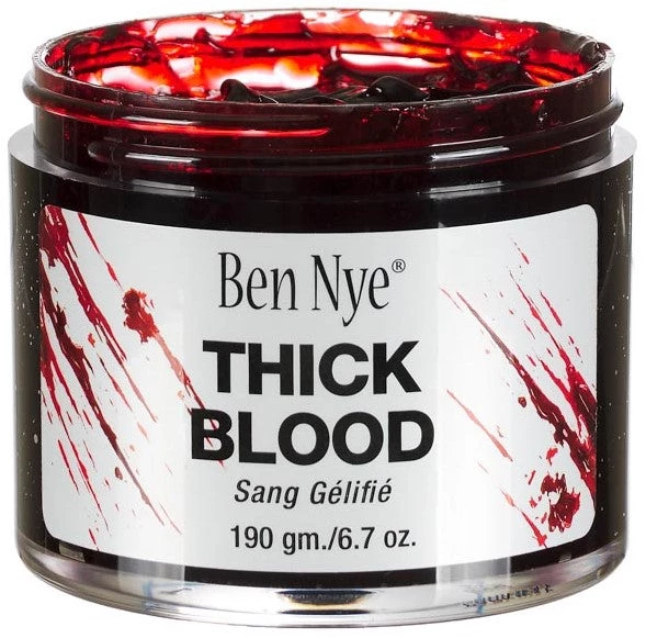 Ben Nye’s Thick Blood is a moist, jam-like texture that can bea used to fill wounds. Creates a great chunk effect. Scrape Thick Blood along skin with a stipple sponge for an abrasion or road rash. Remove with Hydra Cleanse or soap and water.