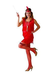 Flapper dress with fringe on front, sequin headband. Adult standard (8-10)