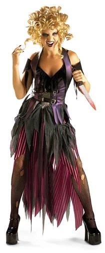 Includes dress with shredded strip look and matching corset top. (Shoes, pantyhose and props not included.)