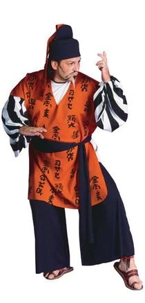 Costume includes hat, shirt, overtunic, waist sash and pants.