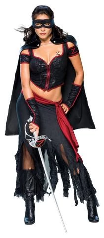Costume includes top, skirt with waist sash, cape, eyemask and gauntlets. (Sword not included, hat available separately)