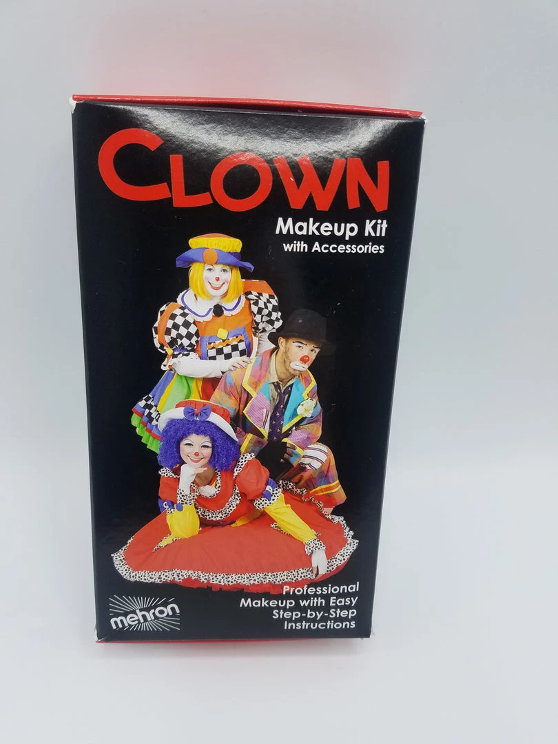 Includes: Step by step instructions, 5 color makeup palette, colorset setting powder, powder puff, non-latex foam wedge, makeup remover cloth, full sized pencil liner, full size makeup brush, stipple sponge, clown nose.