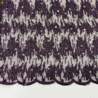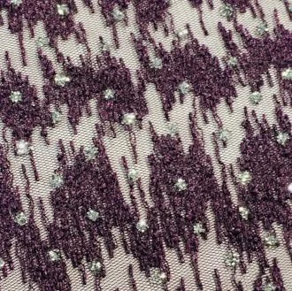 Embroidered Tulle with Glitter Dots is a plum embroidery on a mesh background. The glitter dots really make this fabric an eye catcher.