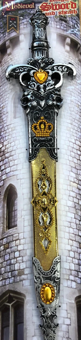 Plastic 26” medieval knight sword in plastic sheath.