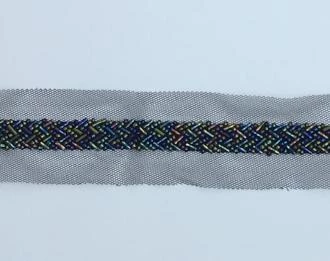 Multicolor Bugle Bead Trim has iridescent beads and is sold by the yard.