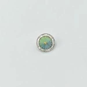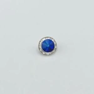 Glass Eye Buttons have a brilliant center stone of blue or green which is surrounded by a row of channel-set rhinestones. Perfect for adding glitz to dance costumes, formal gowns, purses, and much more.