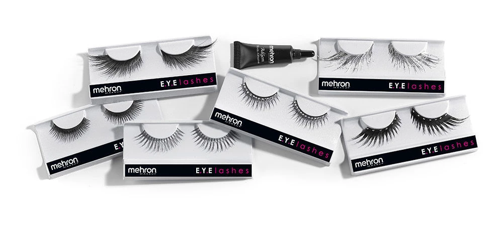 E.Y.E Lashes are a glamorous, dramatic way to transform eyes to the next level! Get noticed with Mehron’s intricate, high quality, handmade synthetic lashes that create intrigue and pushes the fashion envelope. E.Y.E Lashes are flexible and can be tailored for every day or on special occasion wear. E.Y.E Lashes may be worn full width or trimmed for adding a subtle accent on the outer corners of the eye. Available in multiple lash looks for a little extra oomph or volume va va voom! When carefully handled and cleaned, E.Y.E Lashes are reusable.