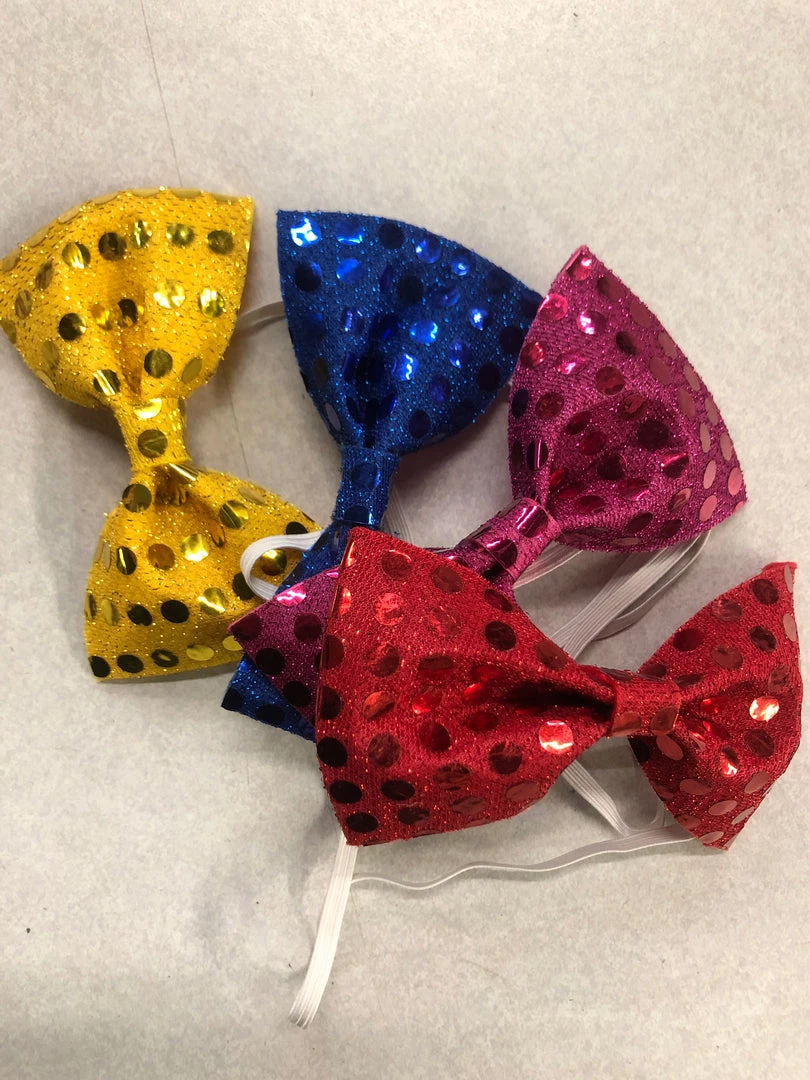 Small bow tie with glitter knit & matching sequins. 2”x4”