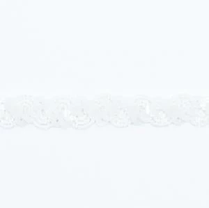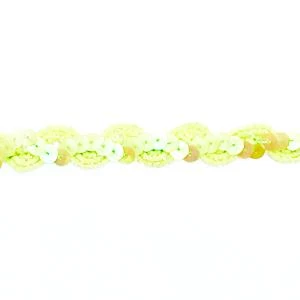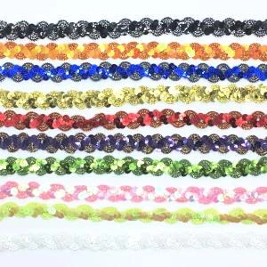 Sequins on Scallop Trim comes in a variety of colors and is great for decorating dance costumes and adding bling to whatever needs it. Sold by the yard. 1/4″ wide. No stretch.