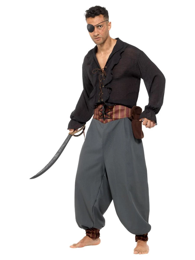 Pirate Blouson Pants, Grey, with Pockets. Front lace up tie and waist pouch.