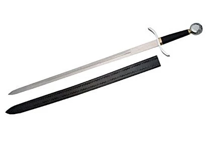 This Silver Knight Sword is 40.25″ in overall length. The blade is made of stainless steel. This sword comes with leather sheath.