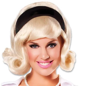 1950’s Flip Wig for the fifties housewife, prom girl or teenager. Popular style with fullness on the top with detachable headband. One size fits most.