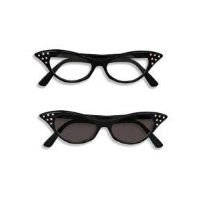 50’s Rhinestone Glasses are made of black plastic frames with your choice of clear or dark plastic lenses.