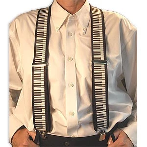 Piano print suspenders are a great gift for any music lover. Adjustable with metal clasps. 2″W.
