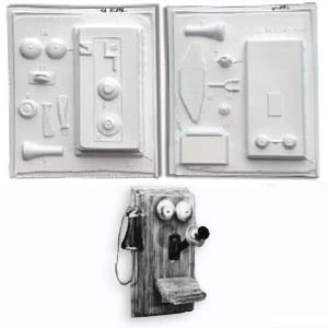 17″ wide x 22″ long Old Fashioned Wall Phone NEEDS ASSEMBLY with vinyl cement and painting as desired. Comes in white vinyl plastic that needs to be cut; similar to Easy Armor pieces. Will incur additional shipping if shipped air.