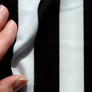 Striped 1″ Spandex. Stripes run with the length of fabric. Black and White. 90%Poly, 10%Spandex. Priced per yard. 60″W