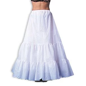 Petticoat with Ruffles will add some fullness to your dress with two layers of netting underneath. White with drawstring waist to accomodate a size 4 to a size 20.