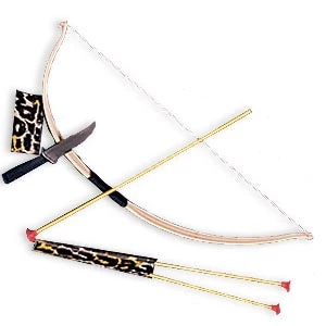 This Native American Bow, Arrow & Knife Set includes three arrows with suction cup ends, knife (8″), quiver & bow. Plastic. 24″L