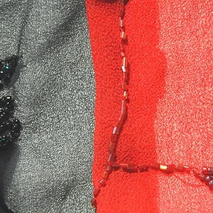 Black sheer chiffon with beaded leaves and design. 40″W. Sold by the yard.HURRY, LIMITED YARDAGE AVAILABLE. SORRY, RED HAS ALREADY SOLD OUT!
