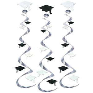 Graduation Cap Whirls. Hang this from a door, wall or window to honor your graduate. 3 pcs. 30″L