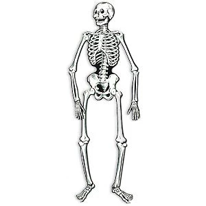 55″ tall, this cardboard skeleton cutout is printed on both sides.